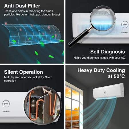 Stay comfortable through every season with this 1.5 Ton Inverter Split AC, designed to deliver powerful and energy-efficient cooling for rooms up to 180 sq. ft. The inverter technology ensures stable temperature control while reducing power consumption, making it ideal for daily use in Indian homes.