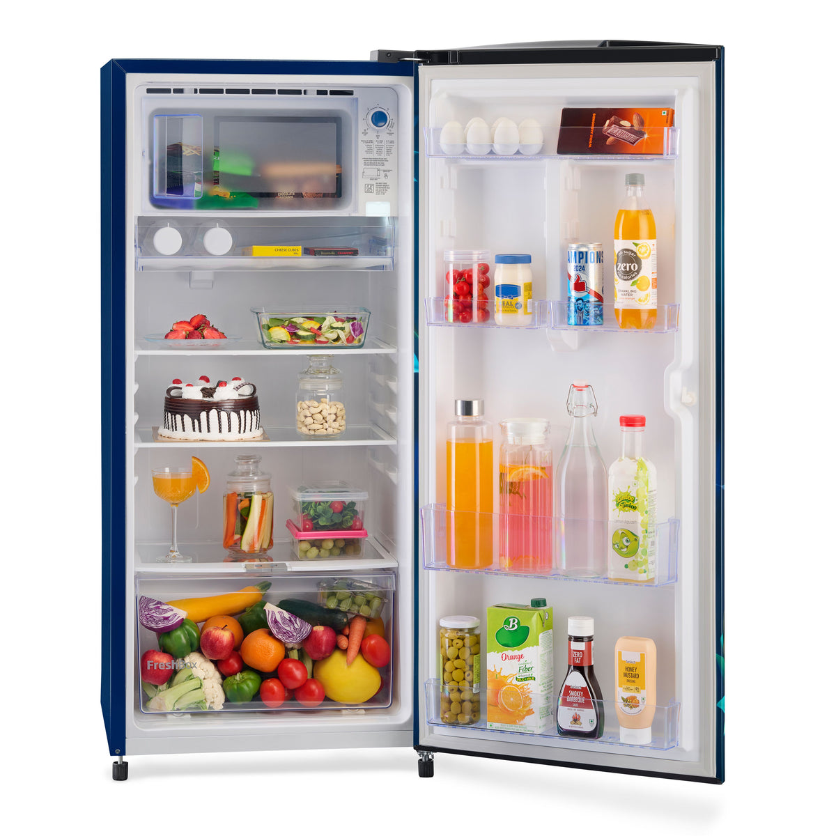 This refrigerator is designed to deliver superior freshness, convenience, and durability for everyday use. The advanced Fresh Box™ with Crisper Humidity Controller helps maintain the ideal moisture level, keeping fruits and vegetables fresh for longer. A dedicated Chiller Zone ensures quick cooling for beverages and dairy items.