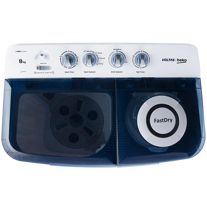 Voltas 8 kg Semi-Automatic Top Loading Washing Machine, 2 Casette Filter | WTT80DBLT
