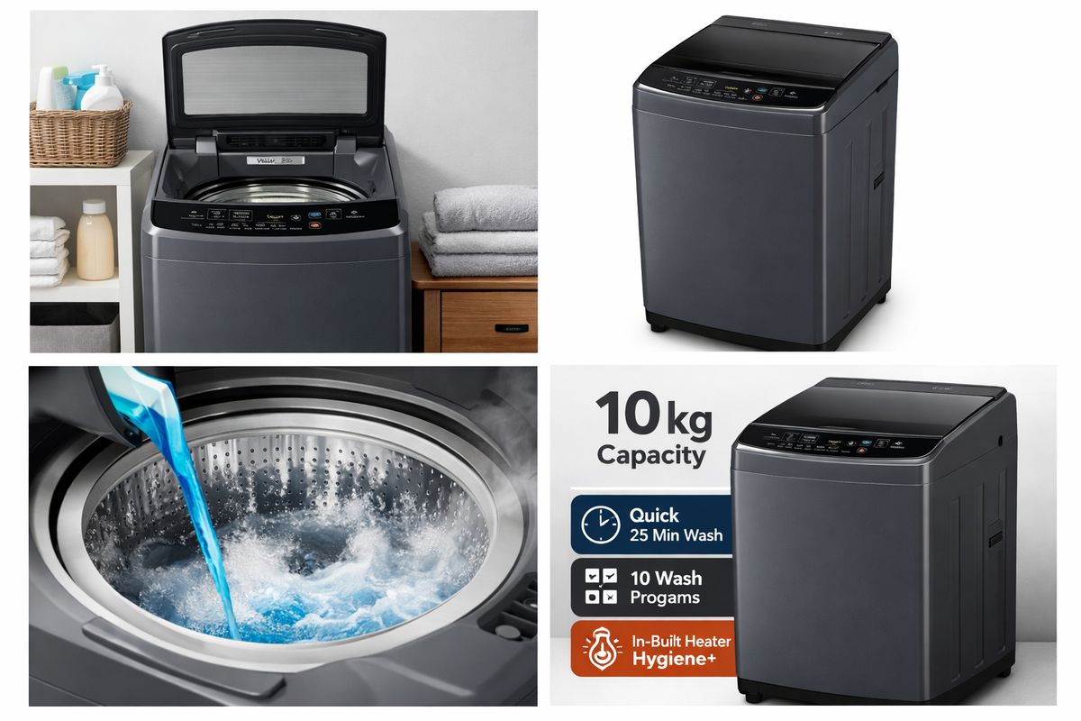 Introducing the Voltas Beko 10 Kg 5 Star Fully Automatic Top Load Washing Machine — an efficient, feature-rich laundry solution designed for modern Indian homes. With a generous 10 kg capacity, this top-load washing machine is ideal for large families and frequent laundry loads. Powered with advanced wash technologies like in-built heater powered by Hygiene+, it sanitizes deeply by removing stubborn stains and allergens, ensuring every wash is hygienic.